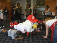 Right after the parade I headed to my good friend G-Wiz’s birthday party at the Verizon Center. During the Wizards game last night, I was able to catch up with my other buddies, the Oriole Bird, and Slapshot as well. We all had a great time meeting the Wizards’ fans and wishing G-Wiz a HAPPY BIRTHDAY!!! My wings are really tired right, so I’m going to take a quick bird nap. Look for me in town real soon because I am continuing to be real busy