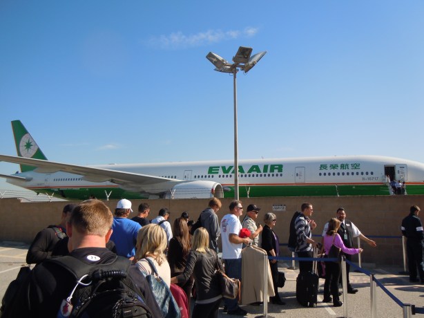 After spending one night in LA, I boarded the charter flight to Taiwan this morning. Or was that yesterday? Maybe it was even two days ago considering how long it felt. But regardless, after a 14.5 hour flight, we finally touched down in Taipei, Taiwan! The plane we flew on was the largest plane I’ve ever seen. It had two sections of first class along with two sections of coach. We were able to sit wherever we wanted to, even lay down on the floor to sleep which some people took advantage of. All in all, the flight was as quick as 14.5 hours could be.