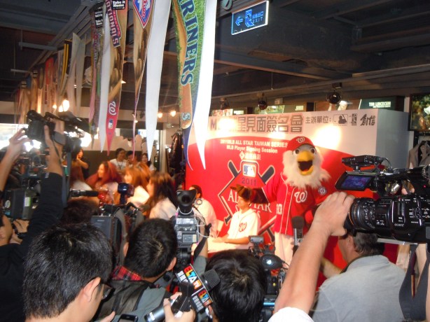 This morning I headed to an MLB store located in the center of Taipei with Michael Morse and Ross Detwiler for an autograph signing.